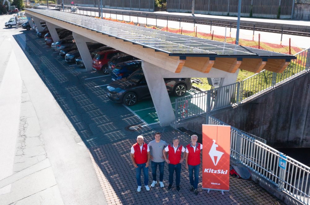 Bergbahn AG Kitzbühel setzt auf Nachhaltigkeit mit innovativem Solar-Carport von AEP. Produziert werden 65.000 kWh grüner Strom.