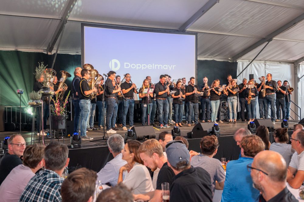 Den musikalischen Auftakt der 130-Jahr-Feier machte die Doppelmayr Big Band, eine talentierte Formation aus Mitarbeiterinnen und Mitarbeitern der unterschiedlichsten Abteilungen. Die Big Band hat eine lange Tradition im Hause Doppelmayr und tritt stets bei feierlichen Anlässen auf, wie beispielsweise bei der Eröffnung des Büro Hohe Brücke oder bei Seilbahneröffnungen. Aber auch bei Personal-Ehrungen oder Firmenfeiern spielen die Musikanten das eine oder andere Ständchen. Auch der DJ des Abends war aus den eigenen Reihen: DJ Alen ist Doppelmayr-Mitarbeiter und hat auf der 130-Jahr-Feier für den richtigen Party-Sound gesorgt.