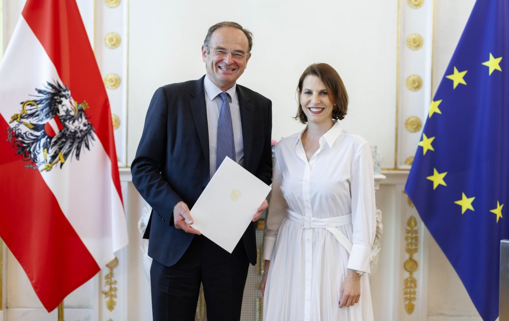 Im feierlichen Rahmen wurde Dir. Georg Bliem, Geschäftsführer der Planai-Hochwurzen-Bahnen, zum Kommerzialrat ernannt. © BKA/Andy Wenzel