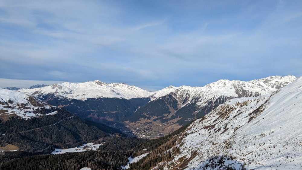 Blick vom Seehorn nach Klosters am 2. Januar 2023: Warten auf Schnee. Foto: Jonas Götte/SLF