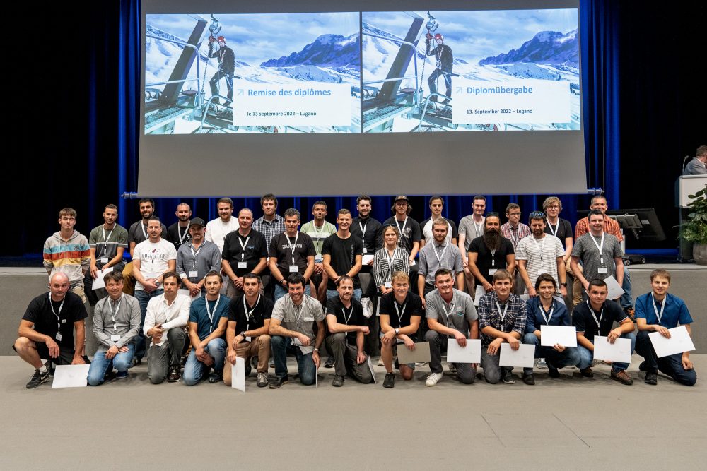 Eine Seilbahnfachfrau sowie 51 Seilbahnfachmänner können sich über den erfolgreichen Abschluss ihrer Weiterbildung freuen. Im Rahmen der Technischen Seilbahnfachtagung vom 12. bis 14. September 2022 in Lugano (TI) durften sie ihr Diplom entgegennehmen. Nach 18 Monaten berufsbegleitendem Unterricht, mehreren Zwischenprüfungen und der Berufsprüfung steht den Seilbahnfachleuten nun der Weg zum eidgenössisch diplomierten „Seilbahnmanager/in“ offen.