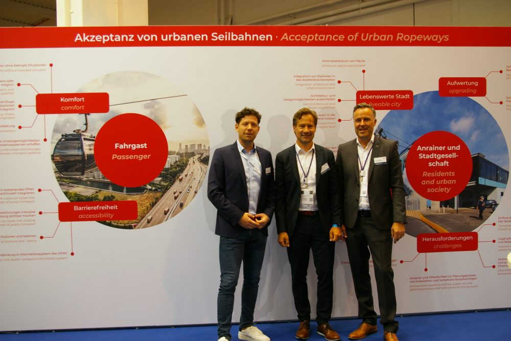 V. l.: Gotthard Schöpf/Head of Marketing LEITNER AG, Jürgen Pichler/Head of Group Marketing Doppelmayr Seilbahnen, und Daniel Fässer, Head of Sales West & Marketing Bartholet, stellten sich auf der Cable Car World Fragen zu urbanen Seilbahnsystemen. ©lw