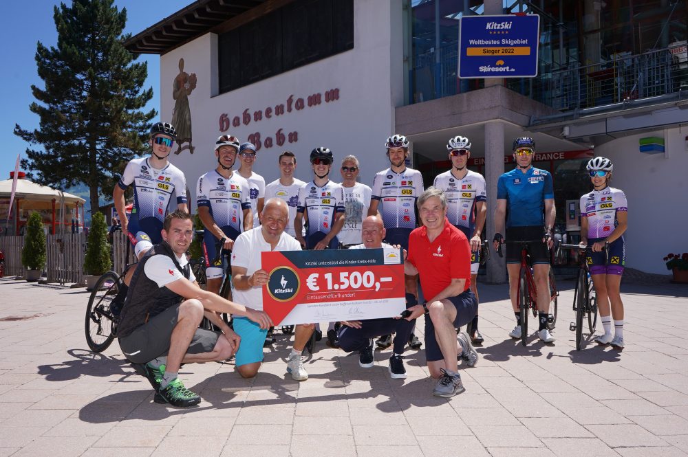 Kitzbühel, Kirchberg, Mittersill. Rückt Krankheit in den Vordergrund, brauchen Betroffene die beste medizinische Versorgung und ein hohes Maß an zwischenmenschlicher Unterstützung. Im Rahmen der Spendenrundfahrt des Union Raiffeisen Radteams Tirol zeigen die Sportler besonders hohes soziales Engagement, um Geld für die Kinderkrebshilfe zu sammeln. Die Spendenrundfahrt durch Österreich startete am 2. Juli und endet am 6. Juli 2022. Sie ist der sportliche Ersatz für die Österreich Radrundfahrt, die heuer erneut abgesagt wurde. Die bestens trainierten Athleten des Union Raiffeisen Radteams Tirol machten auch bei KitzSki Halt und nahmen am 2. Juli den Spendenscheck in der Höhe von 1.500 Euro für die Kinderkrebshilfe entgegen.