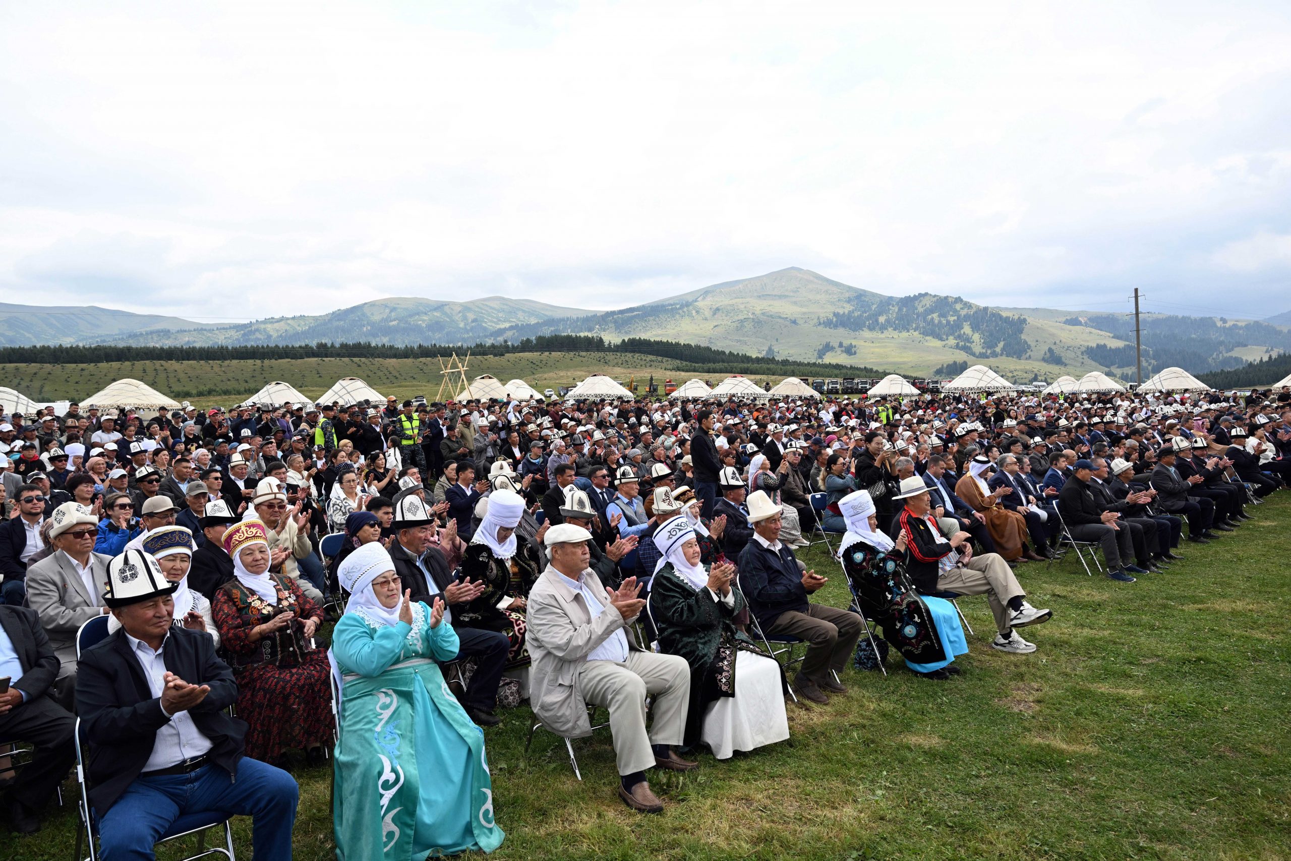 Kirgisistan ist geprägt von einer imposanten Berglandschaft und setzt auf nachhaltigen, modernen und gleichzeitig regional verankerten Tourismus – im Bild das Publikum beim offiziellen Startschuss für das neue Ski- und Ganzjahresresort. © President of the Kyrgyz Republic