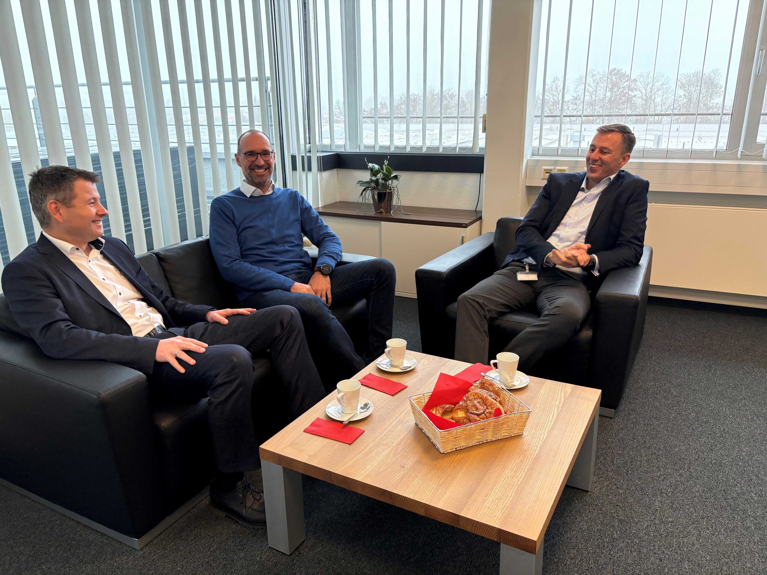Interview im Kässbohrer-Headquarter in Laupheim im Dezember 2025, v. li. n. re.: Heiko Stähle, Alexander Dehm und Dr. Christian Oberwinkler. © Kässbohrer
