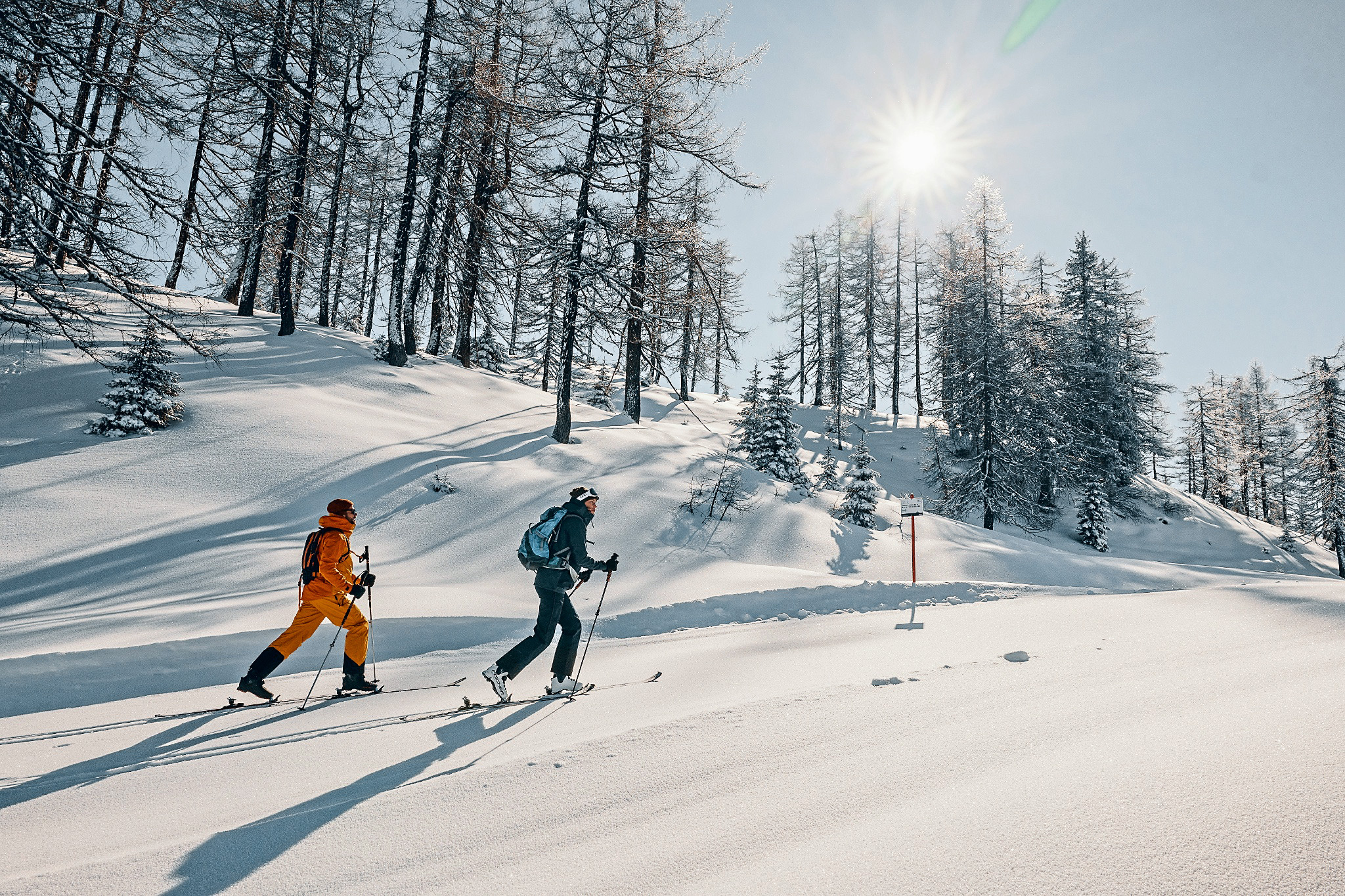 Zwei Skitouerengeher unterwegs im Skigebiet