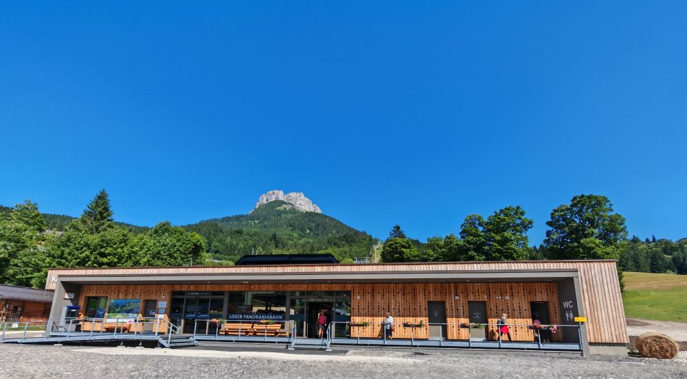 Loser Panoramabahn: Die Lärchenholzfassade im Ausseer Stil der barrierefreien Talstation unterstreicht die regionale Verbundenheit. @ C. Mantona